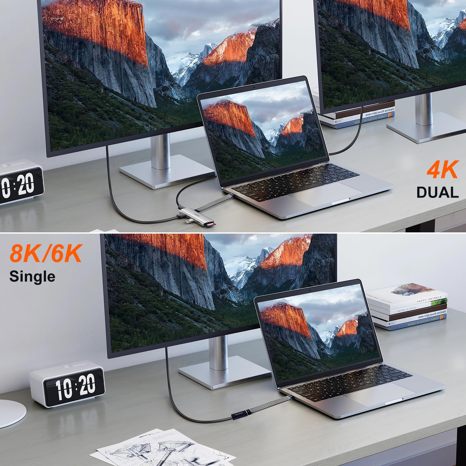 [Удосконалена передача даних зі швидкістю 40 Гбіт/с та виведення відео 8K] Короткий кабель загального призначення USB C-USB C підтримує багатозадачність, передачу даних зі швидкістю до 40 Гбіт/с та виведення відео 4K за 60 Гц або навіть 8K. Його можна не тільки використовувати з багатопортовим адаптером док-станції/USB-концентратора, але також передавати високоякісні та високошвидкісні дані через кабель ThunderBolt 3 або 4. Зверніть увагу, що швидкість передачі даних та відео залежить від підтримки пристроїв USB C.