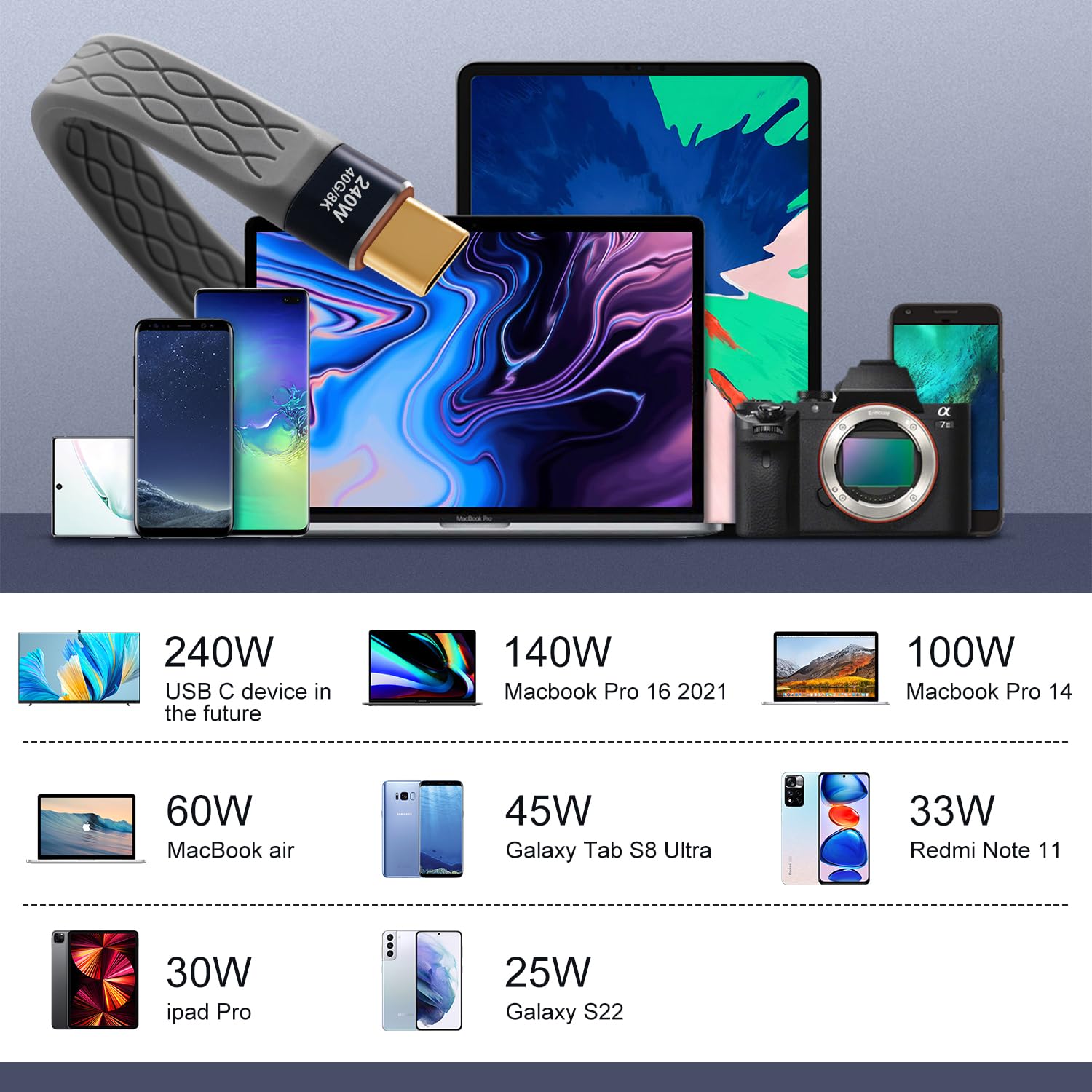 [Широко використовується] Короткий USB-C кабель, сумісний з MacBook, iPad Pro, Dell XPS, Surface, Chromebook, Samsung, Google, Huawei, MOTO, LG G5, Nexus і т. д. Switch/Switch Lite, Oculus Quest та інші ігрові хости, ноутбуки, планшети, док-станції, SSD, EGPU, смартфони, Power Bank з інтерфейсами USB-C, Type-C.