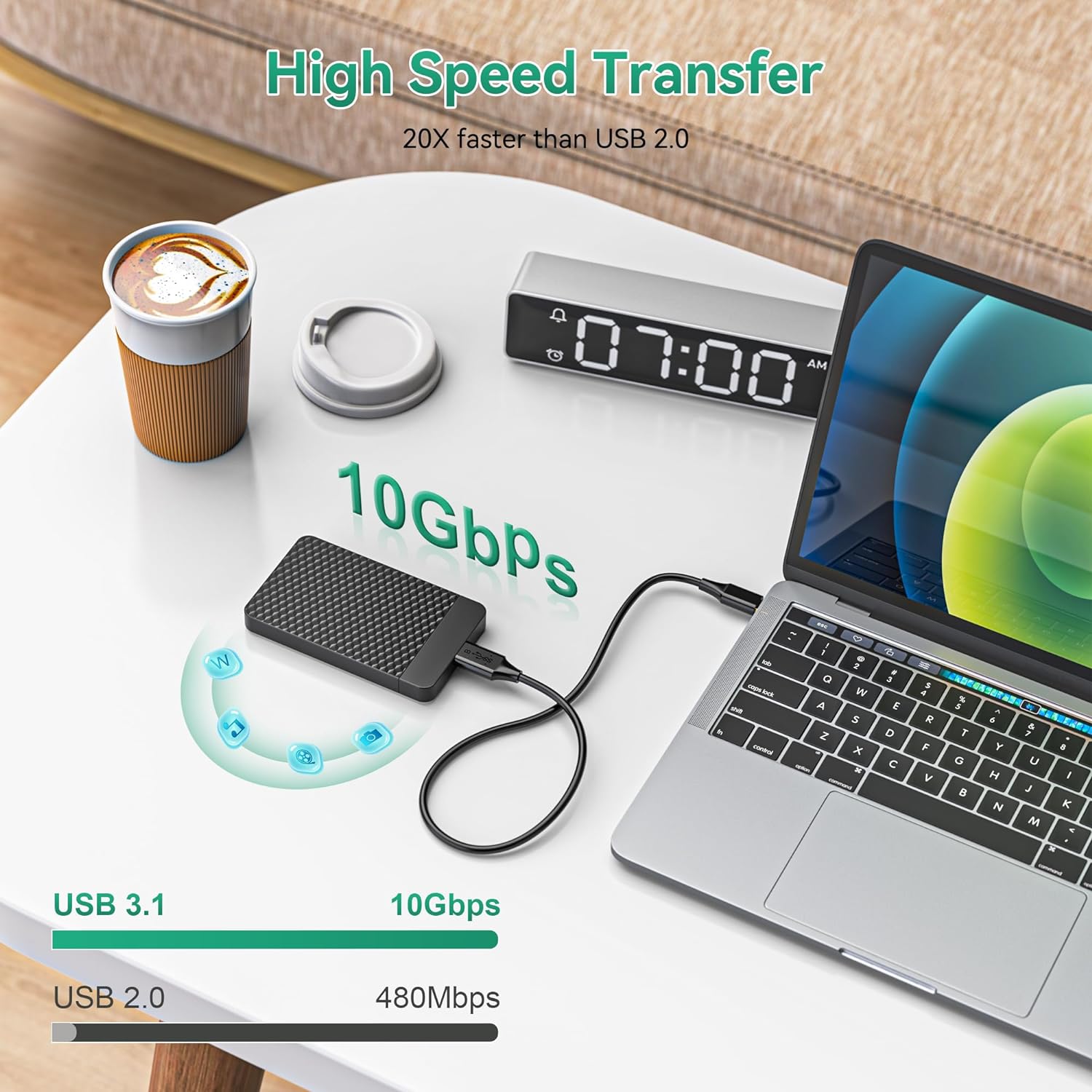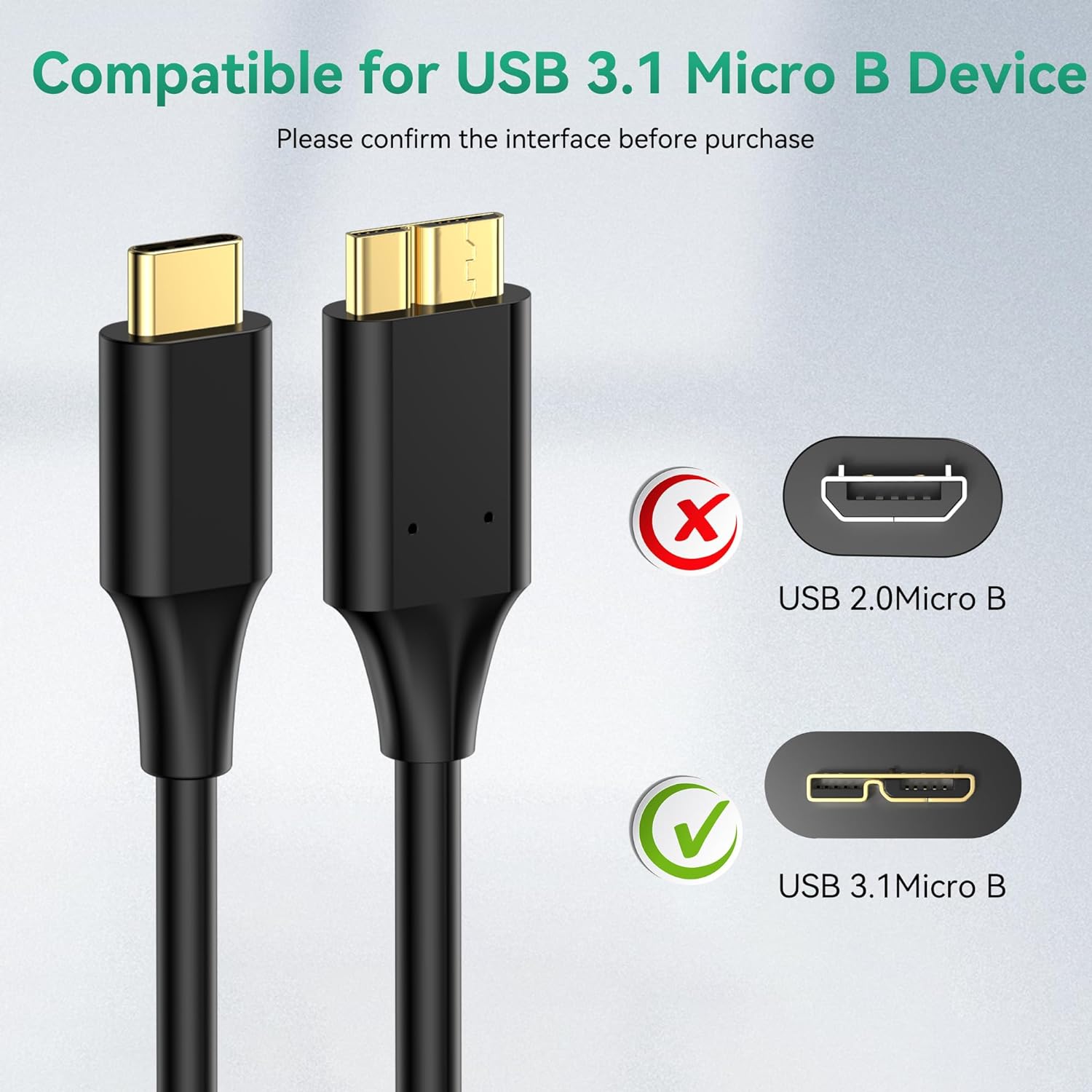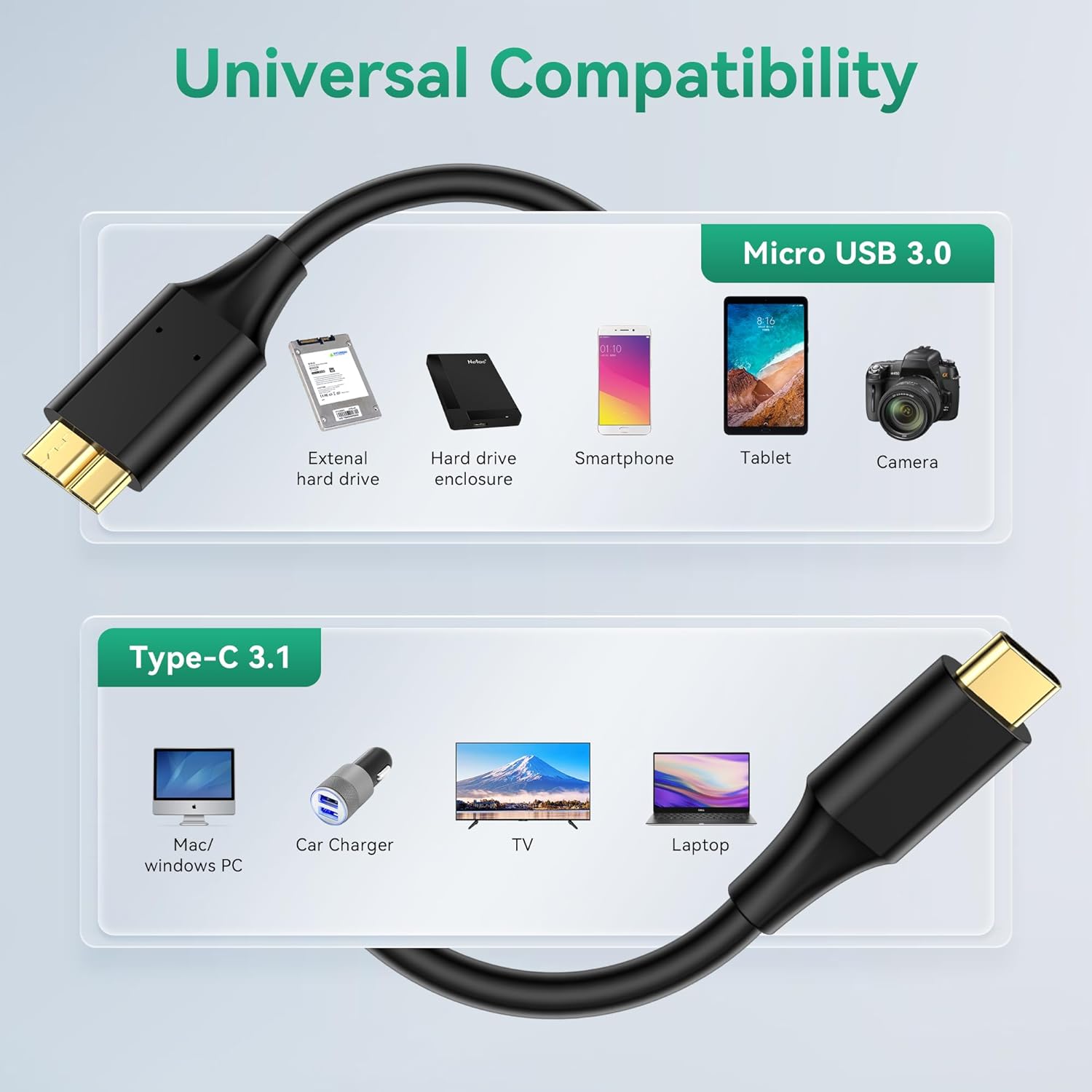 Високошвидкісна передача: кабель передачі даних Micro USB 3.1 підтримує стандартну швидкість передачі даних USB 3.1 до 10 Гбіт/с, що у 20 разів швидше, ніж USB 2.0. Ви можете передавати великі обсяги файлових даних, аудіо та відео за лічені секунди.