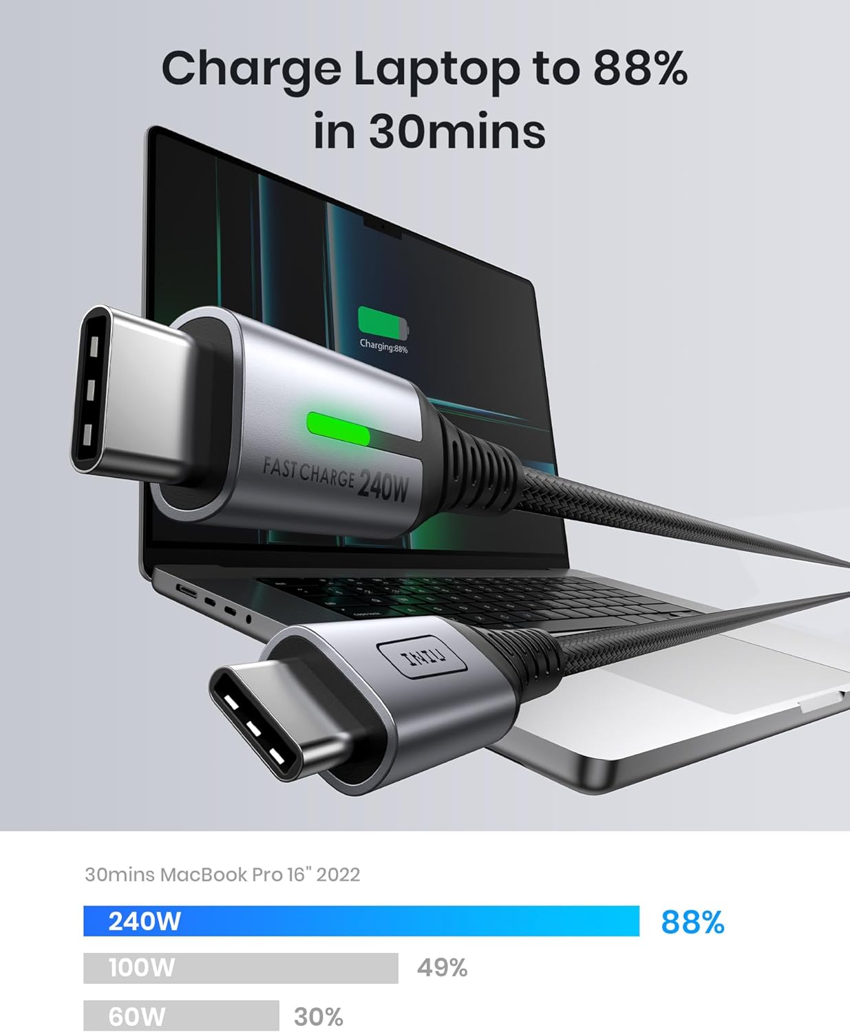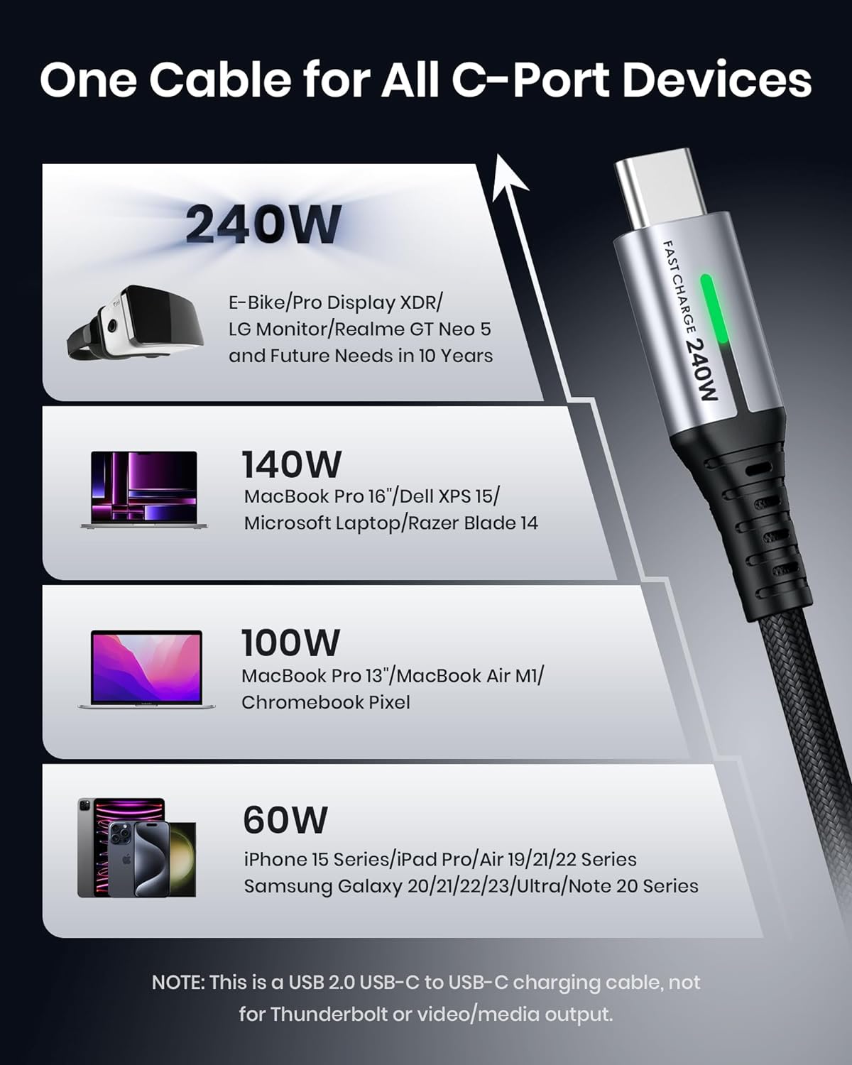 Бездоганно працює з усіма існуючими пристроями з C-портом, від великих до маленьких (потрібно 240/200/170/140/100/60/18 Вт) — ноутбуки, телефони, планшети, STEAM DECK та комутатори, який би пристрій ви не хотіли зарядити, це можна зробити ефективніше.