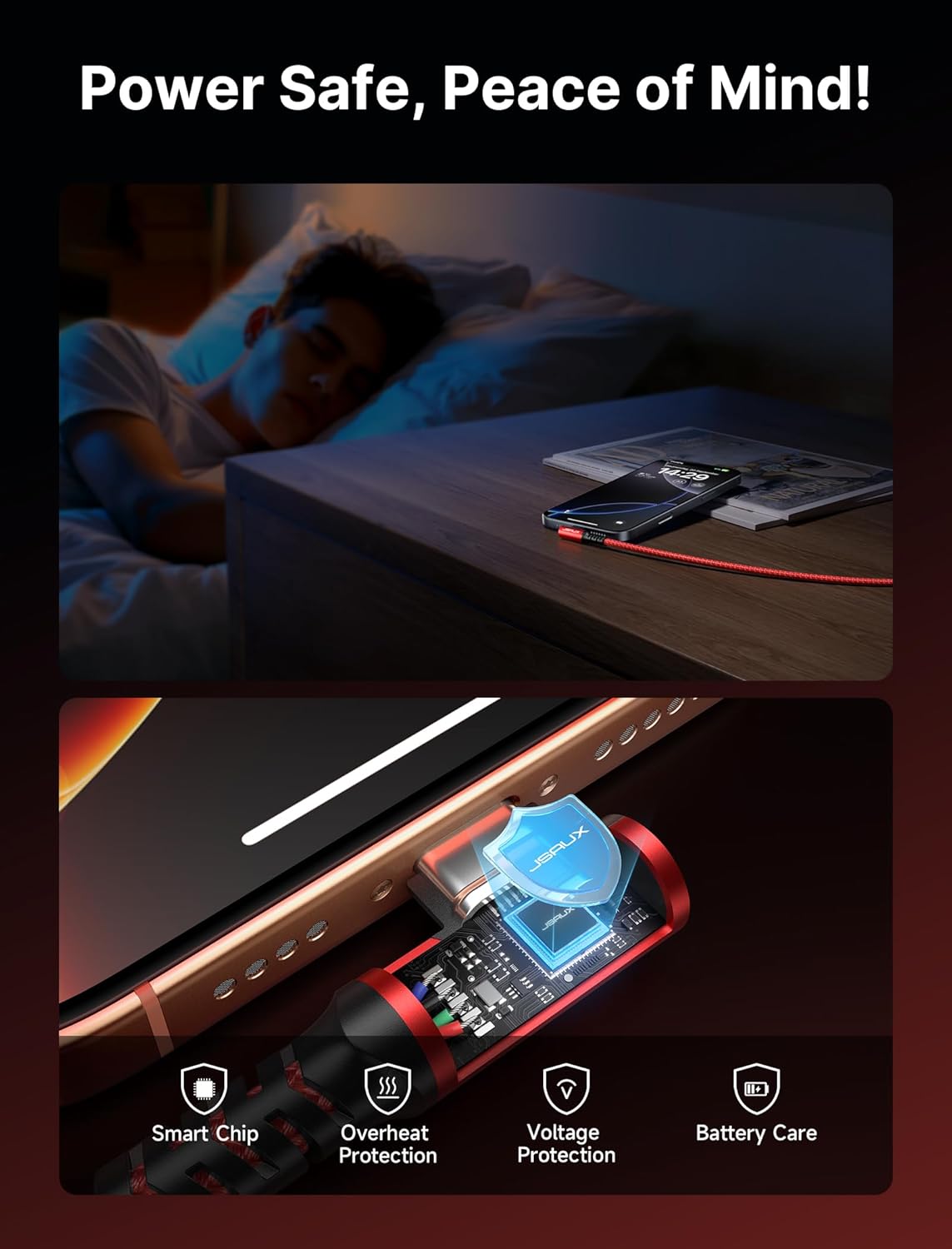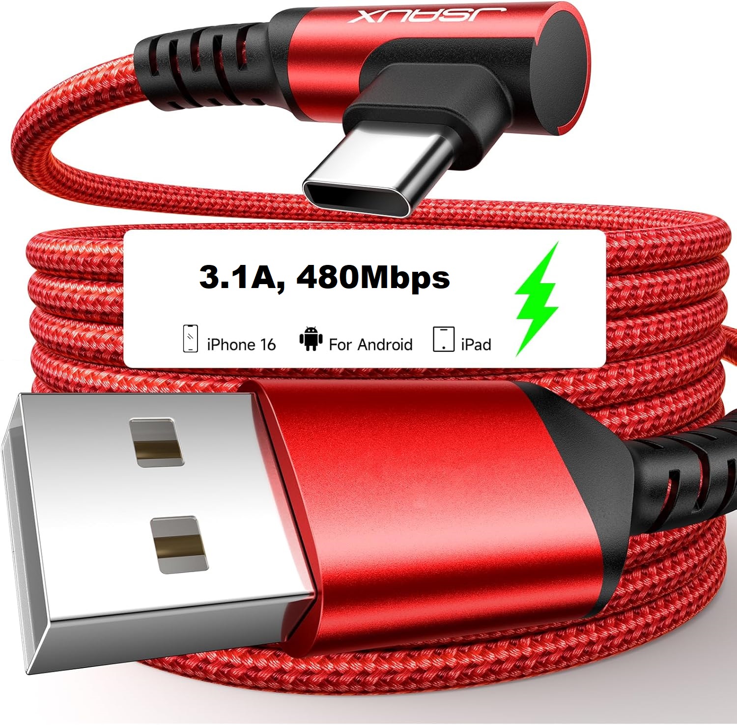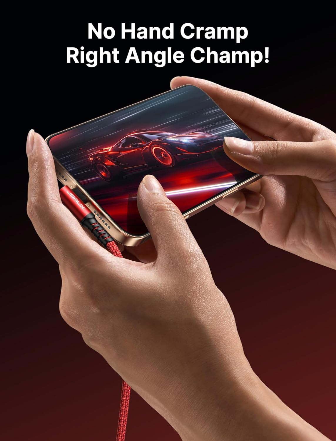 Кабель швидкого заряджання JSAUX L-подібний C-порт, який може ефективно уникати пошкоджень, спричинених вигином. Зручніше тримати мобільний телефон під час ігор, перегляду відео, читання електронних книг та під час заряджання.