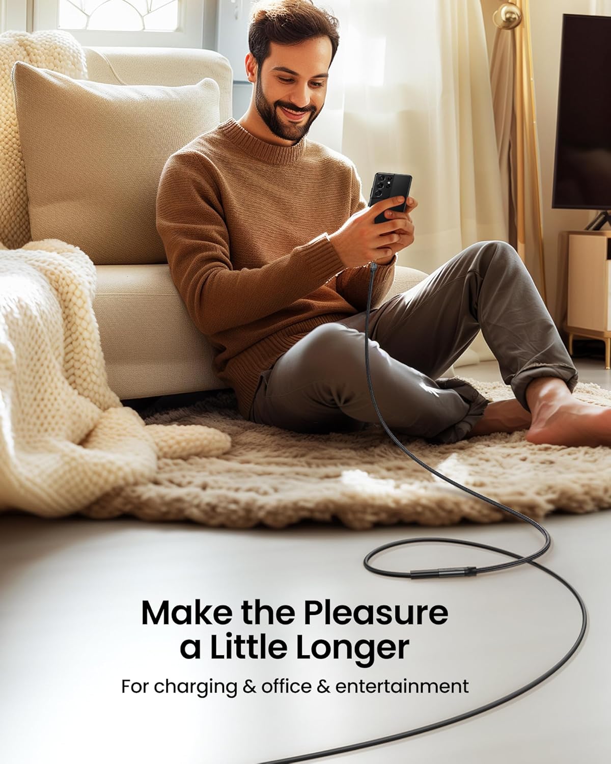 [Сверхскорость зарядки 240 Вт] Удлинитель підтримує швидку зарядку 240 Вт 48 В/5 А. Підходить для кабелю/зарядного пристрою з портом USB C потужністю 140 Вт/100 Вт/65 Вт/30 Вт. Швидко заряджає iPhone 15 до 90% і MacBook Pro до 88% за 35 хвилин, швидше, ніж 60 Вт/100 Вт. Примітка: для максимальної швидкості зарядки ваш пристрій повинен підтримувати зарядний пристрій USB-PD. Переконайтеся, що ваш пристрій, такий як концентратор/док-станція/монітор, підтримує зарядку.