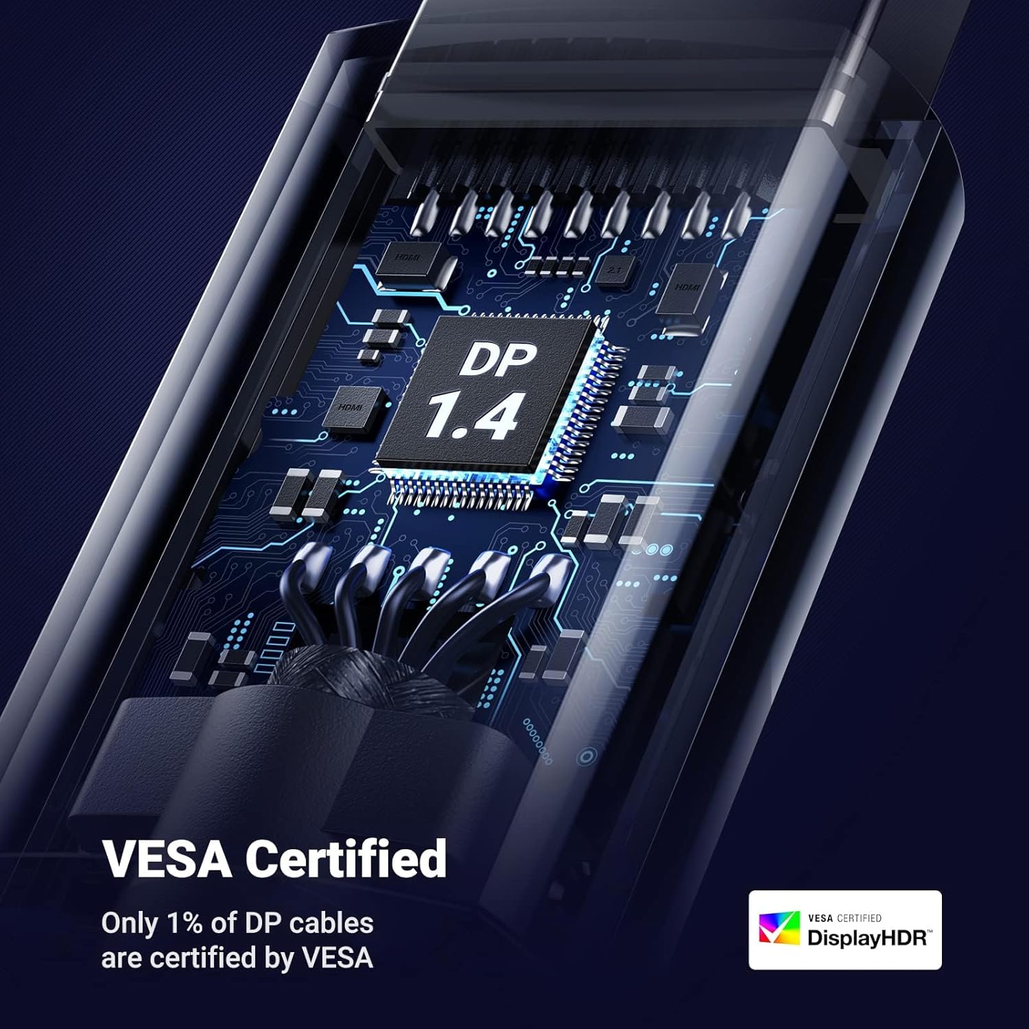 Сертифікація VESA: Цей кабель офіційно сертифікований VESA і підтримує високі роздільні здатності 8K@60Hz, 4K@60Hz/120Hz/240Hz, 2K@120Hz/165Hz/240Hz. Підтримує Dynamic HDR та HDCP 2.2. Зворотна сумісність із DisplayPort 1.3, 1.2, 1.1 та 1.0. Більш висока якість і найкраще обладнання потребують кращих кабелів, тому цей кабель DisplayPort 1.4 сумісний як з популярним 4K обладнанням, так і з майбутнім обладнанням 8K.