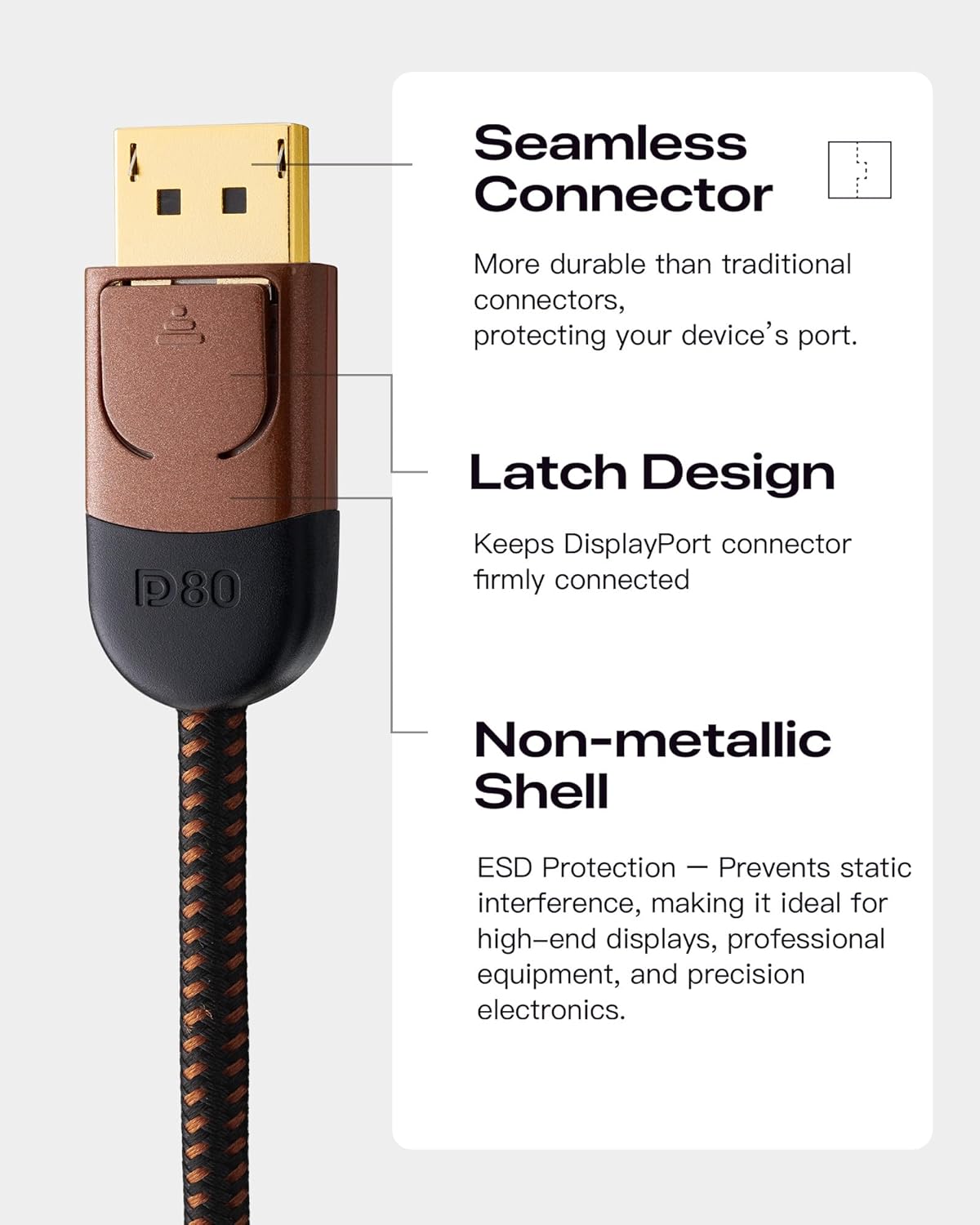 Сумісний з DP 1.0, DP 1.2, DP 1.4-1.4a, DP 2.0, DP 2.1. Працює з USB 3.1/3.2/4 та Thunderbolt 3/4/5 у режимі DP Alt.