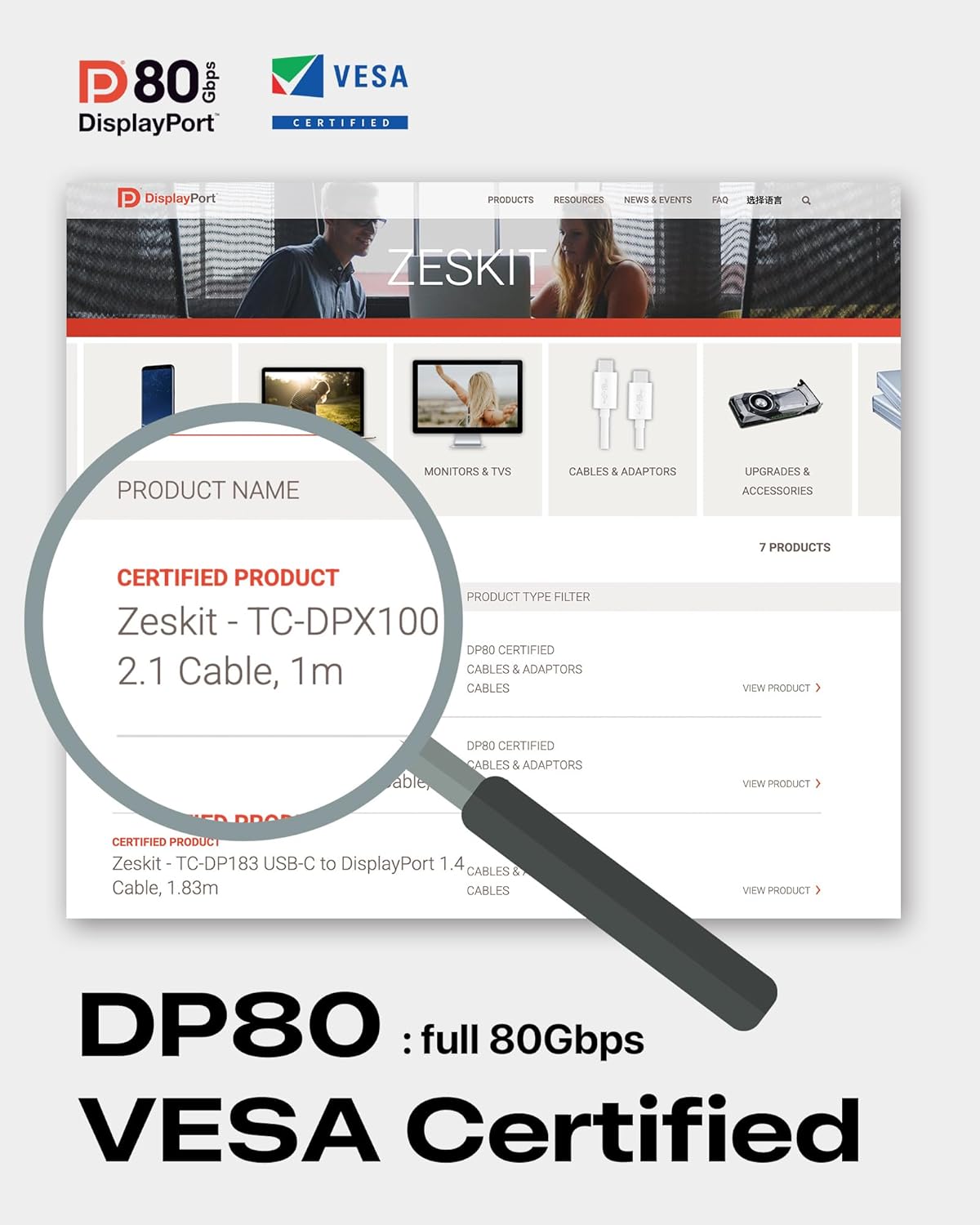Кабель Zeskit X-Tech Type-C to Displayport v2.1 [VESA Certified] 16K@60Hz, 8K@60Hz, 4K@240Hz 80Gbps 1м (TC-DPX100)