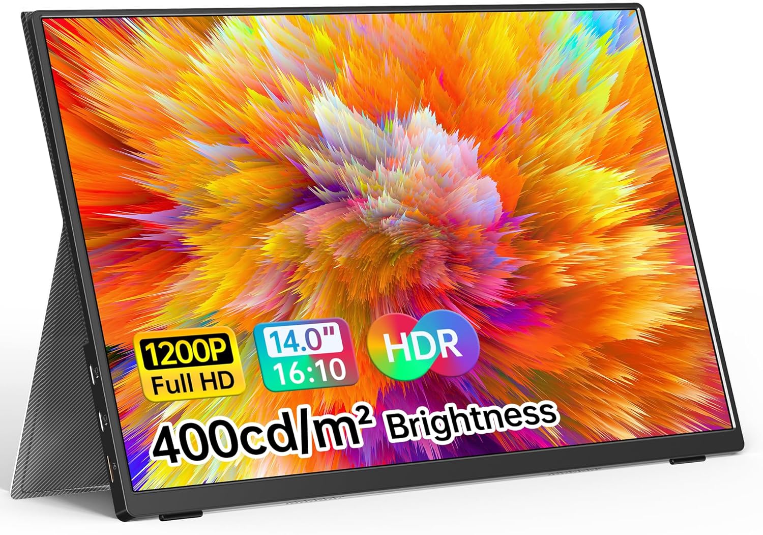 Full HD Portable Monitor – 14-дюймовий портативний монітор з роздільною здатністю 1920*1200, вдосконалений матовий екран IPS підтримує кут огляду 178 °, він передає точні і яскраві кольори, залучає вас у відео або гру з реалістичними кольорами.
