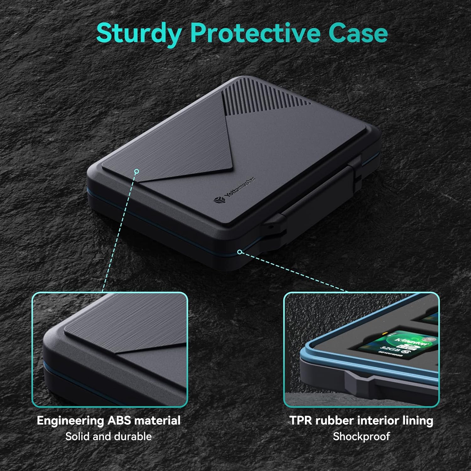 [Міцний захисний чохол, водостійкий]Виготовлений з інженерного АБС-матеріалу і може ефективно захистити вашу карту пам’яті від подряпин, вм’ятин, пилу, ударів та бризок. Вбудоване силіконове ущільнення забезпечує погодостійке ущільнення, яке захищає від води, пилу та сміття. Не турбуйтеся про те, що пам’ять та аксесуари намокнуть або пошкодяться через бризки води, дощу.