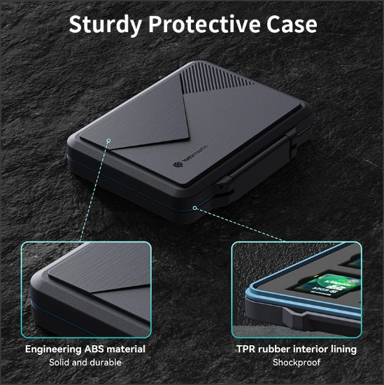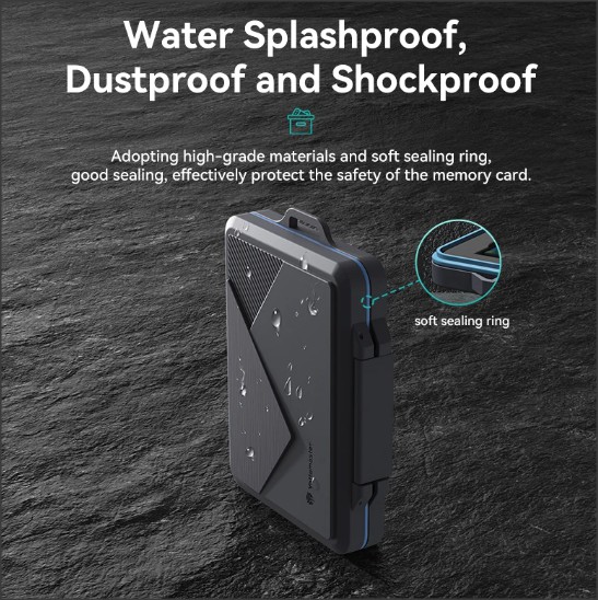 [Водонепроникний Органайзер для SD-карт виготовлений з інженерного АБС-матеріалу та може ефективно захистити вашу карту пам’яті від подряпин, вм’ятин, пилу, ударів та бризок. Вбудоване силіконове ущільнення забезпечує погодостійке ущільнення, яке захищає від води, пилу та сміття. Не турбуйтеся про те, що пам’ять та аксесуари намокнуть або пошкодяться через бризки води, дощу або інших причин.