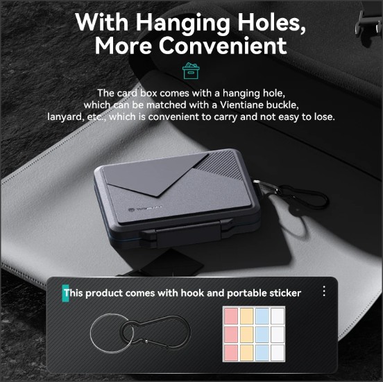 [Безпечний замок Замок корпусу щільно закритий і його можна легко відкрити пальцями. У разі випадкового падіння міцна клямка гарантує, що ваша карта пам’яті не загубиться.